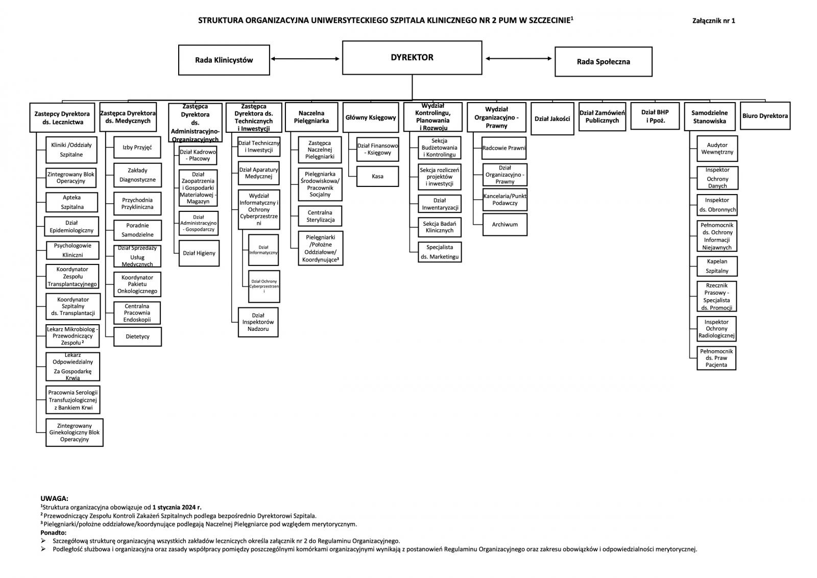 Struktura organizacyjna Uniwersyteckiego Szpitala Klinicznego nr 2 PUM w Szczecinie