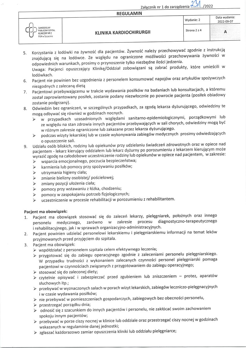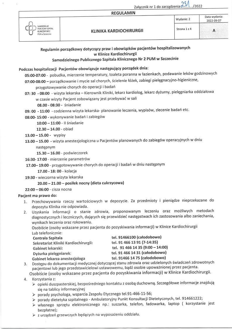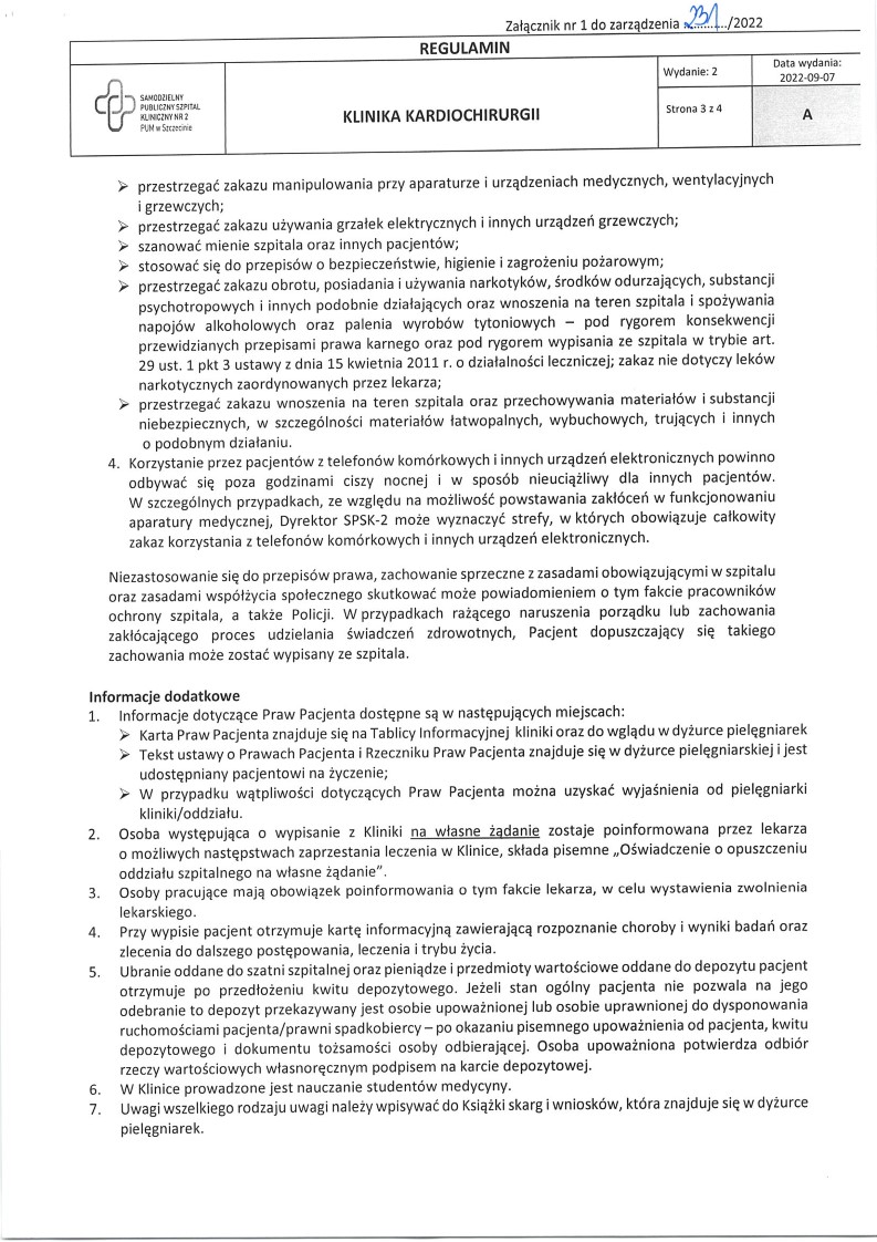 Informacje o Pacjentach leczonych w Klinice Kardiochirurgii oraz przebywających w sali pooperacyjnej udzielane są osobie upoważnionej przez chorego: