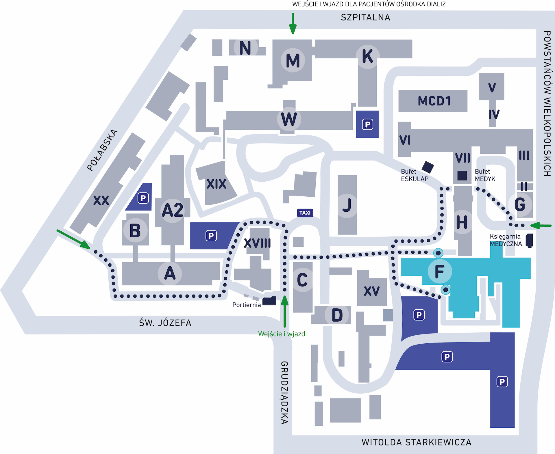Bud. F – wejście na tyłach budynku, od strony parkingu